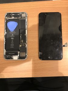 iPhoneの修理を行う際にはまず画面を端末から開く必要があります