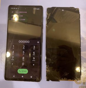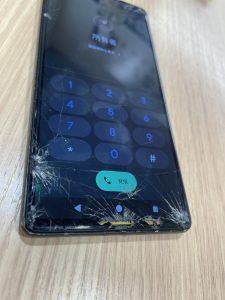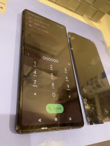 ご来店時端末を拝見すると落下の衝撃により全体的に画面が割れていました。