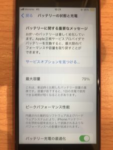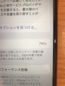 バッテリーの最大容量の表示が79%まで下がってしまっておりました