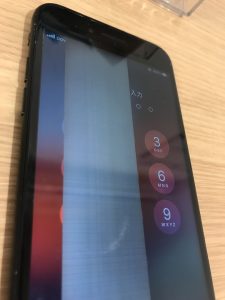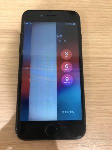 そしてこちらはiPhone7で端末の圧迫により画面に白い縦線が入り