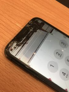 こちらはiPhone11画面上部の割れと液晶の損傷となります。