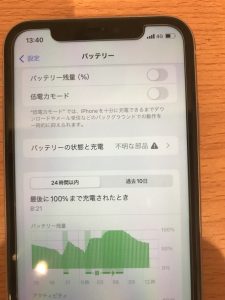 本日iPhone11のバッテリーの減りが早いとの事でご来店いただきました