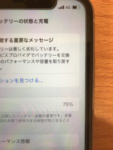 バッテリーの最大容量が75%まで落ちてしまっていました