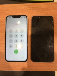 本日iPhone13を落としてしまって画面が割れてしまったとの事でご来店いただきました。