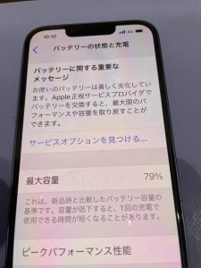 バッテリーは85%を切っていると替え時だと言われております。