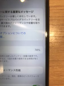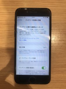 数値が80%切っている場合や充電の減りが早い場合はバッテリー交換ご検討下さい。
