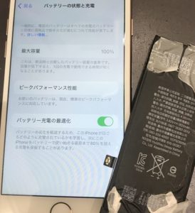 修理後はバッテリーの最大容量も100%に戻り減りの早さも改善する事が出来ました