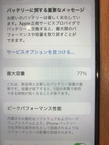 しかしバッテリーの状態の方は最大容量が100%から77%まで下がっており
