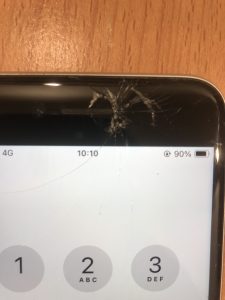 すると画面の方は上部に軽度の割れがあるだけで動作不良や