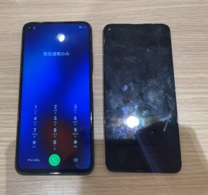 落とした衝撃により液晶が縦に白い線が入り操作できない状態になっていました。