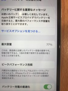 するとバッテリーの最大容量が100%から77%まで落ちてしまっていました。