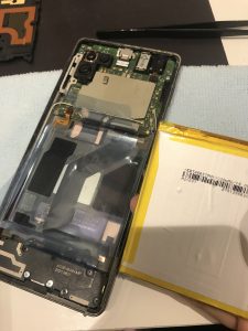 いつもは粘着で固定されている端末が多いですが、今回は直接バッテリーについている
