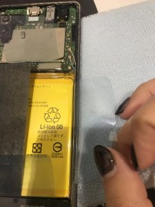 そして新しいバッテリーをいれて青いフィルムで包み込みます。