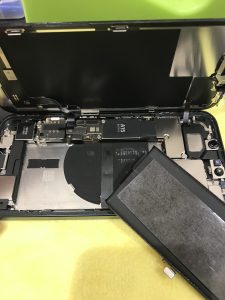 画面割れないよう慎重に開けていきました。バッテリーも強力な粘着で固定されているので