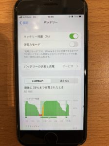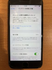 ご来店時の状態はバッテリーの最大容量が74%まで下がっておりました
