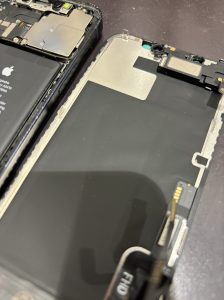 早速修理開始です。iPhone12は画面を開けるとこのような状態になっています。