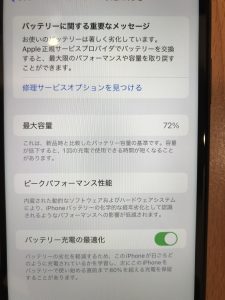 ご来店時の状態としましてはバッテリーの最大容量が72%まで落ちており
