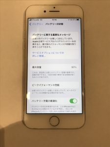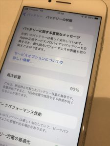 ご来店時の状態としましてはバッテリーの最大容量が90%まで下がっていました。