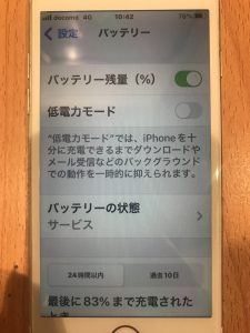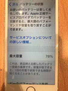 iPhoneのバッテリーは最大容量が80%台になると減りが早く感じる事が多いです