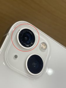 写真の通り落とした衝撃によりPhone13の超広角レンズが割れてしまったとのことです。