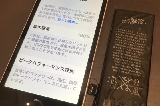 iPhone8のバッテリー劣化!! 枚方市船橋からご来店!