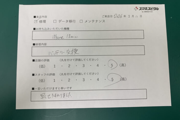 修理をご依頼いただく際には修理時間の目安をお伝えしておりますので、ご安心ください。