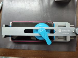 ヒートマットで背面を温め、画面と本体を接着している粘着剤を弱めてから、