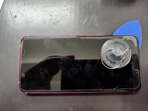 ここからは吸盤で画面を浮かせながら、少しずつスパチュラで粘着剤を剥がしていきます。