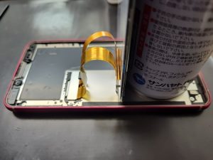 画面と本体の隙間を、エタノールを付着させたスパチュラでなぞってあげると、