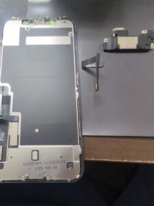 そして取り外した画面からFaceID及びイヤースピーカーパーツを取り外し新しい画面に移殖します。