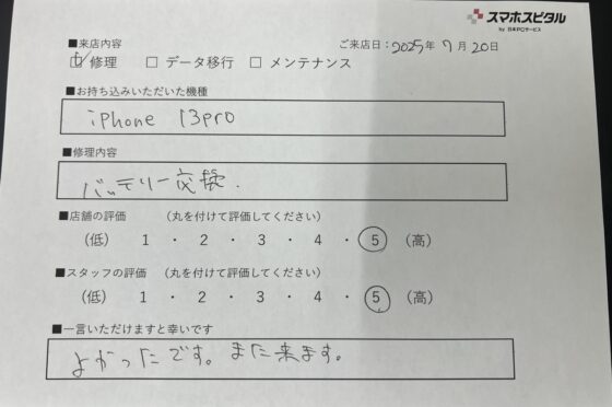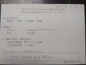 【お客様の声】iPhone 13proのバッテリー交換のお客様にお声をいただきました。