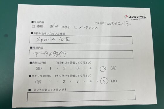 【お客様の声】Xperia 10Ⅱのデータ移行のお客様にお声をいただきました。