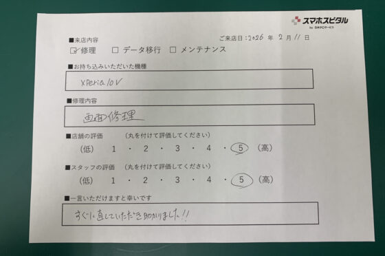 【お客様の声】Xperia10Vの画面交換のお客様にお声をいただきました。