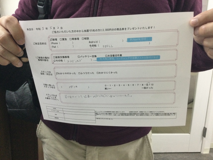 スマホスピタル京橋 【お客様の声】3DSLLスライドパッドボタン交換してもらいました