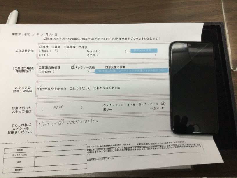 スマホスピタル京橋 【お客様の声】iPhone7バッテリー交換してもらいました