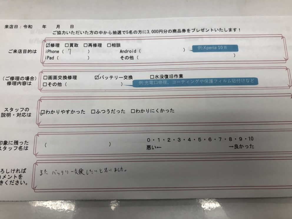 スマホスピタル京橋 iPhone7 バッテリー交換