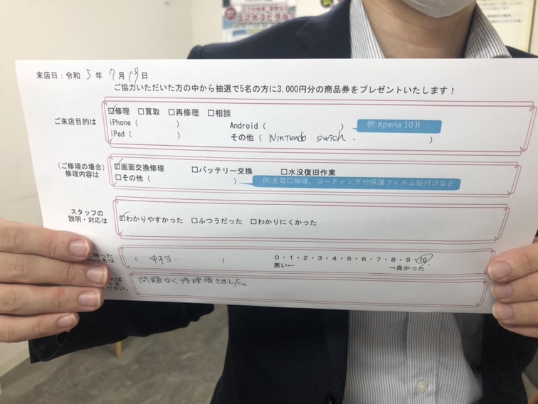 Switch修理来店ありがとうございました。