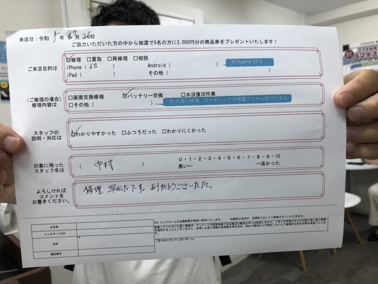 iPhoneの修理とフィルムの貼り換えに来ていただきました!