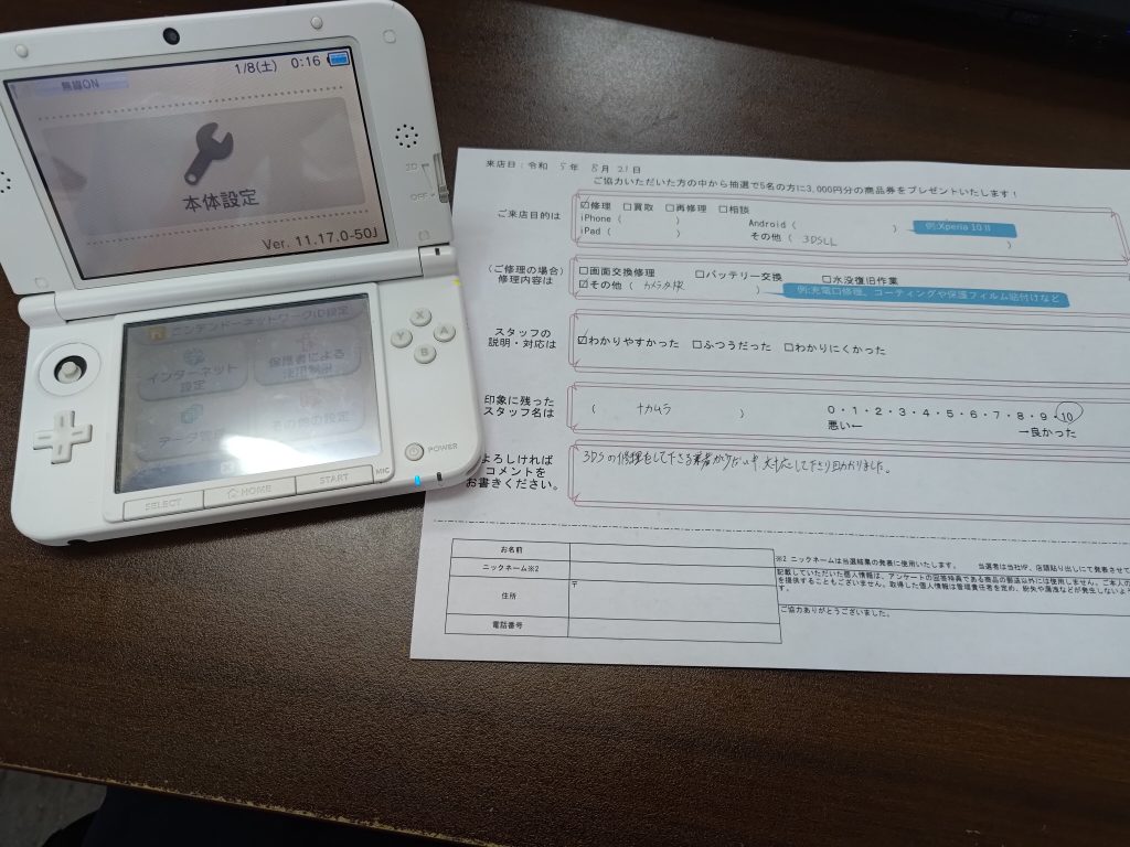 スマホスピタル京橋 3DSLLのカメラ交換修理承りました!