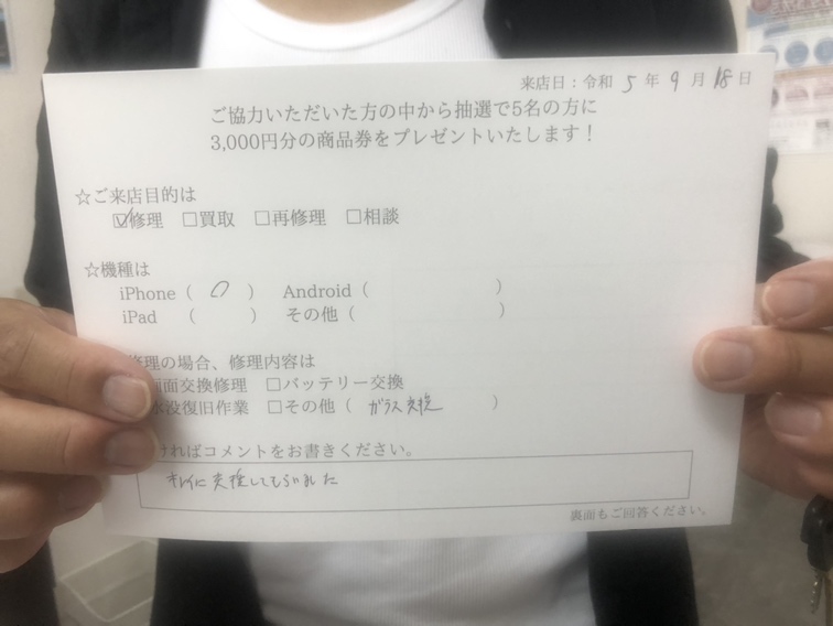 SE2の画面交換に来ていただきました。