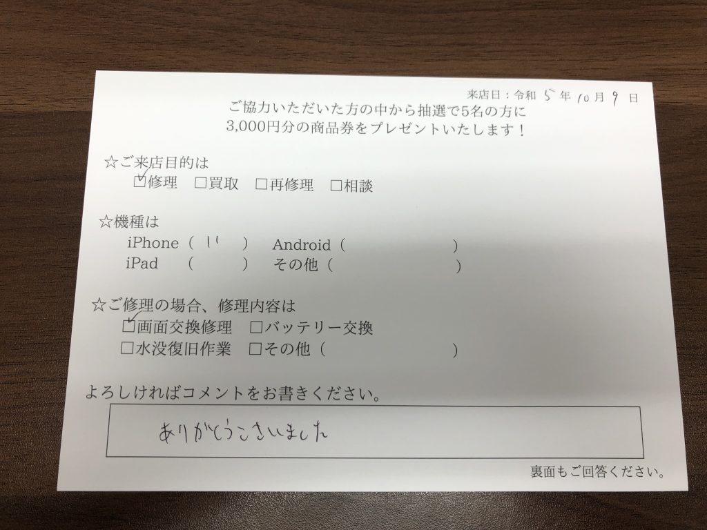 スマホスピタル京橋 iPhone11の画面交換を承りました!