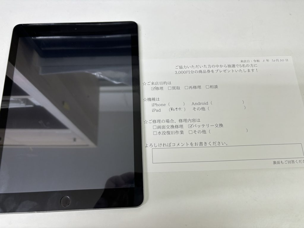 スマホスピタル京橋 iPad6バッテリー交換でお客様のお声頂きました