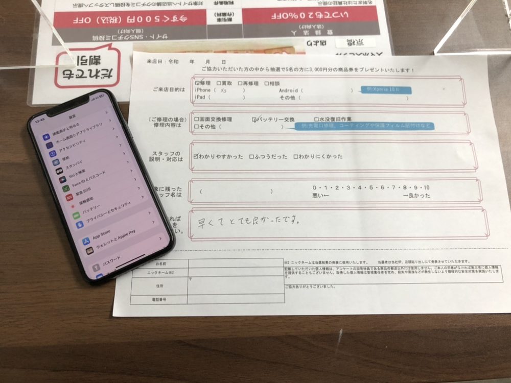 【お客様の声】Xperia10Vの画面交換のお客様にお声をいただきました。