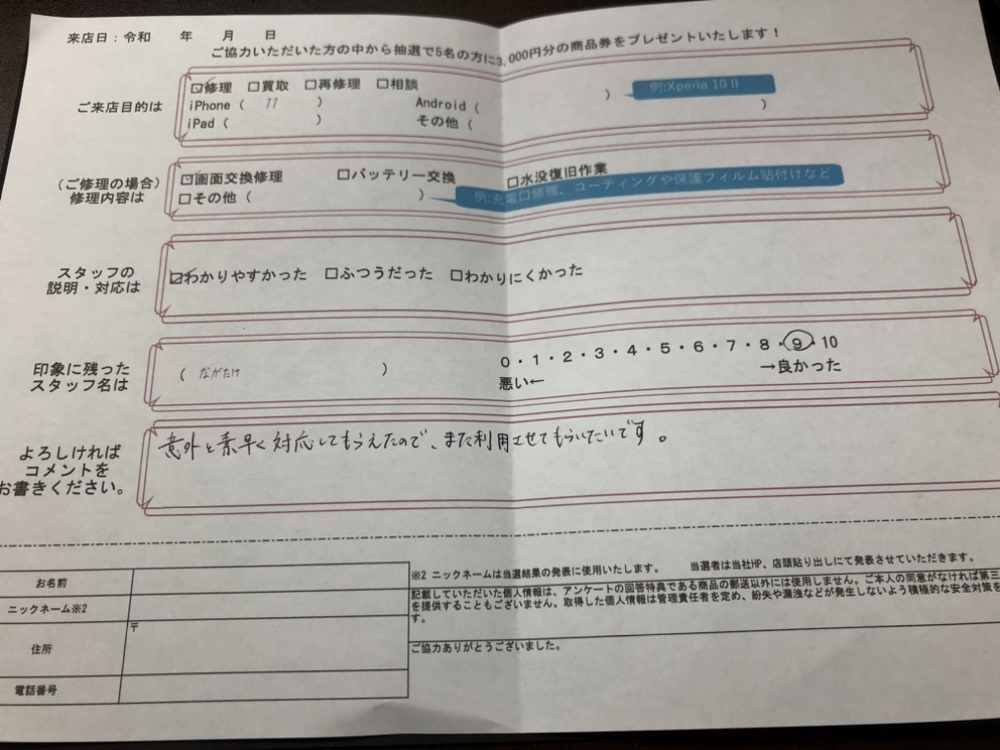 【お客様の声】Xperia10Vの画面交換のお客様にお声をいただきました。