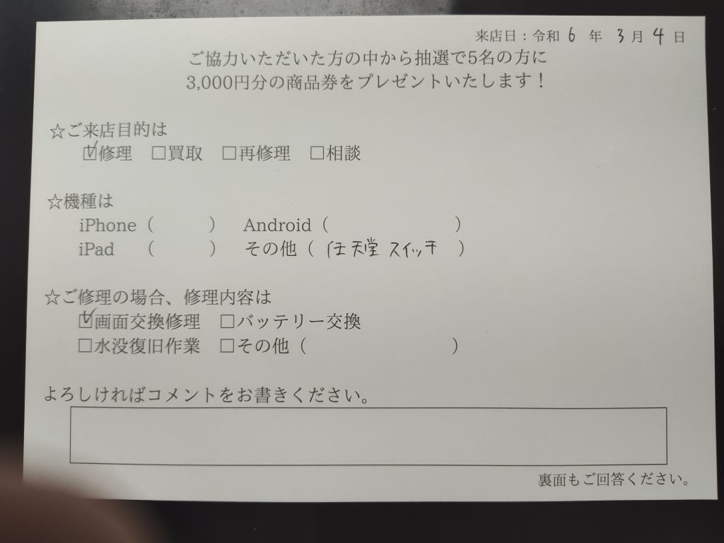 スマホスピタル京橋 Nintendo Switchの液晶交換を行いました