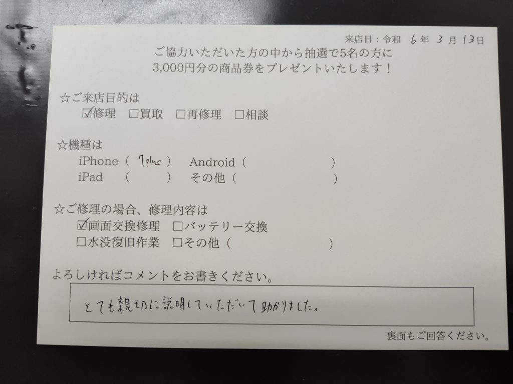 スマホスピタル京橋 iPhone 7Plusの画面交換を行いました