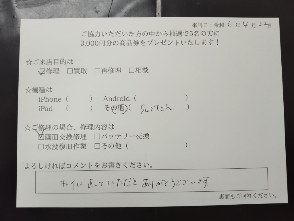スマホスピタル京橋 Nintendo Switchの液晶の交換を行いました
