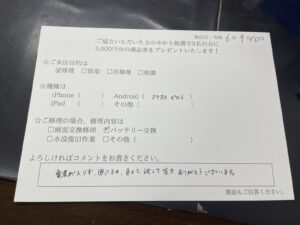 スマホスピタル京橋 【お客様の声】AQUOS zero6 バッテリー交換をしました