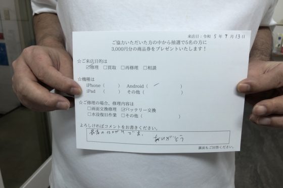 弊社の修理サービスをご利用いただいきましたお客様の声です。