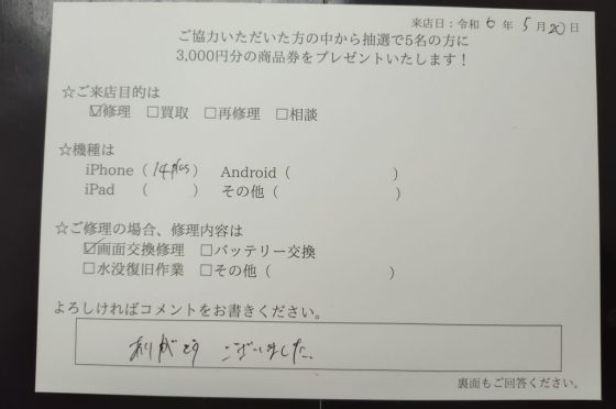【お客様の声】iPhoneの画面交換を行いました!